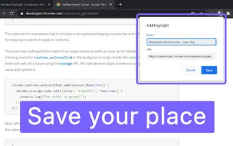 Highlight hoạt động bằng cách tạo các đánh dấu trang để lưu vị trí của bạn trên trang. Chỉ cần nhấp chuột, bạn có thể tạo một đánh dấu trang sẽ ghi nhớ vị trí của bạn. Điều này đặc biệt hữu ích khi bạn cần nghỉ ngơi sau khi đọc và muốn tiếp tục từ chỗ bạn đã dừng lại.